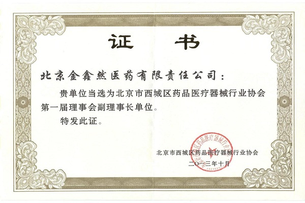 我公司参加了北京市西城区药品医疗器械行业协会成立大会。经大会举手表决通过,当选为第一届理事会副理事长单位,并颁发了证书。
